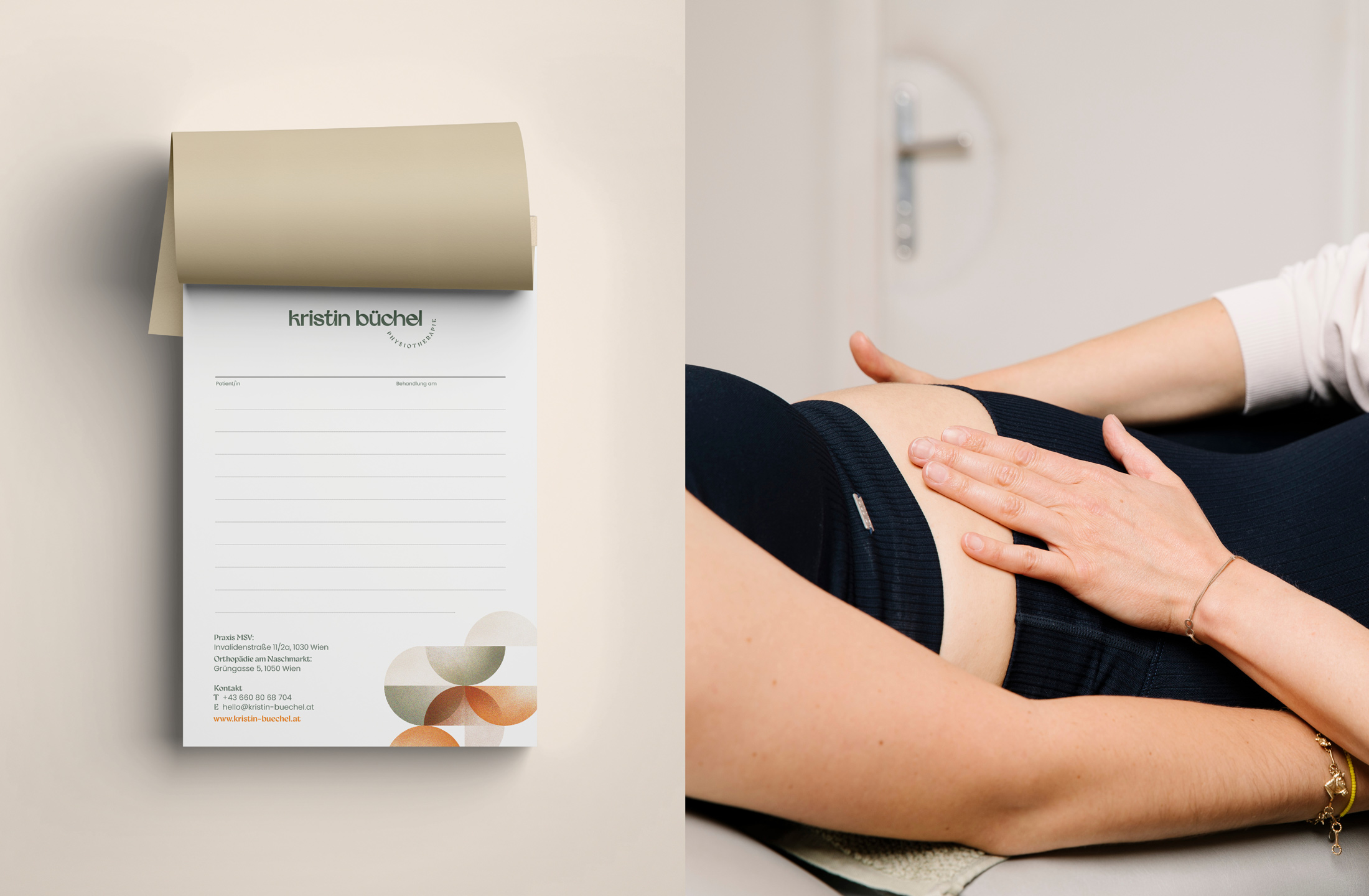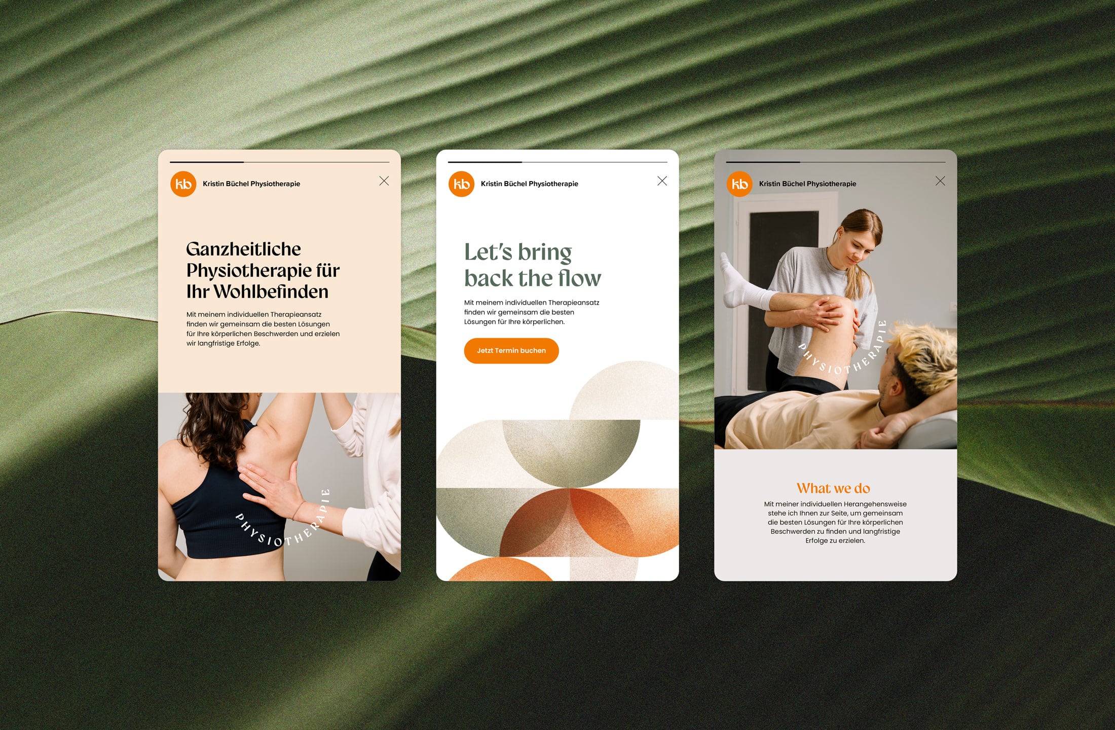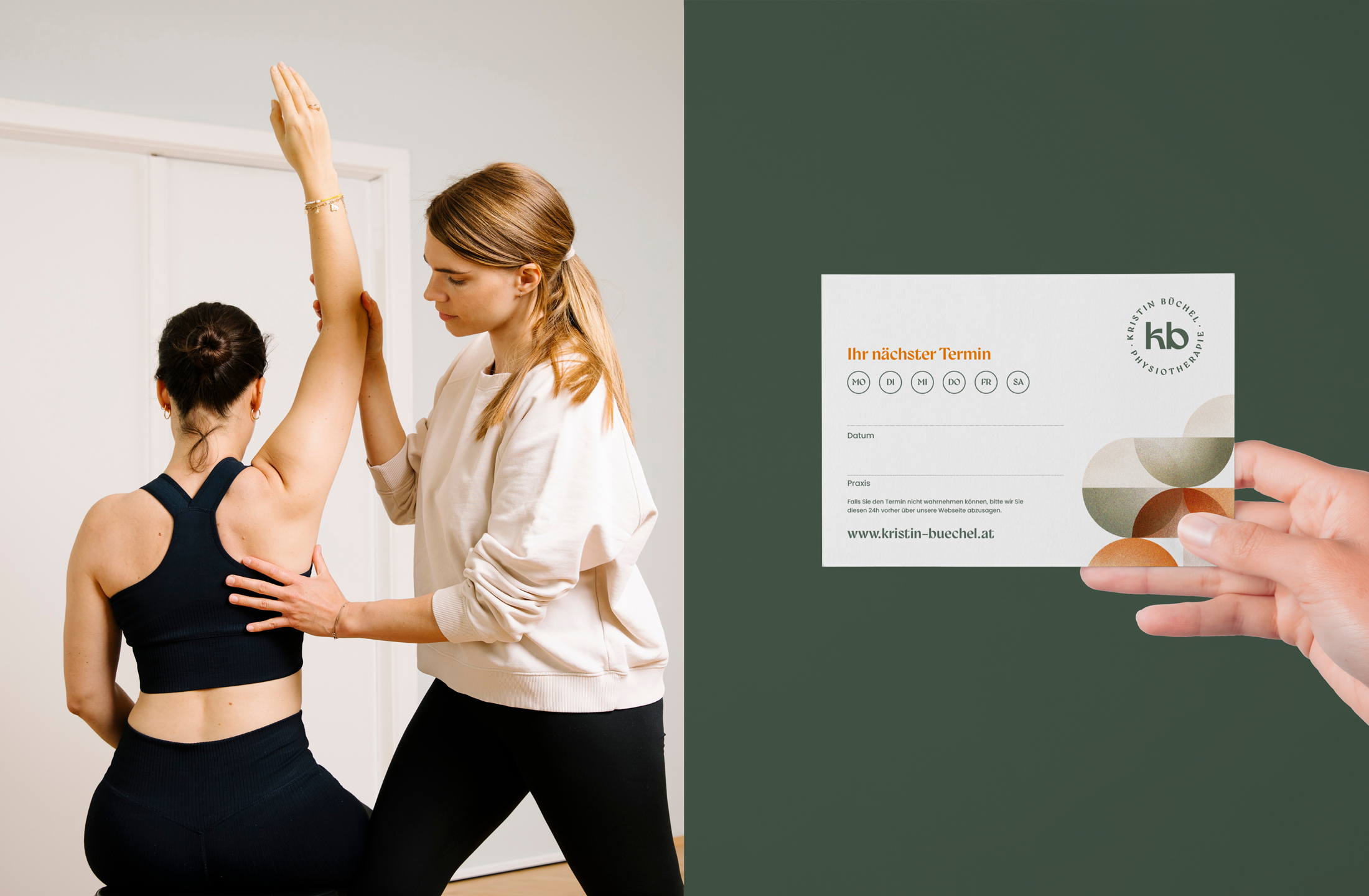 For physiotherapist Kristin Büchel's personal branding, we focused on developing a brand that is both authentic and luxurious. Unconventional fonts and a confident visual appearance reflect her modern therapeutic approaches and expertise.