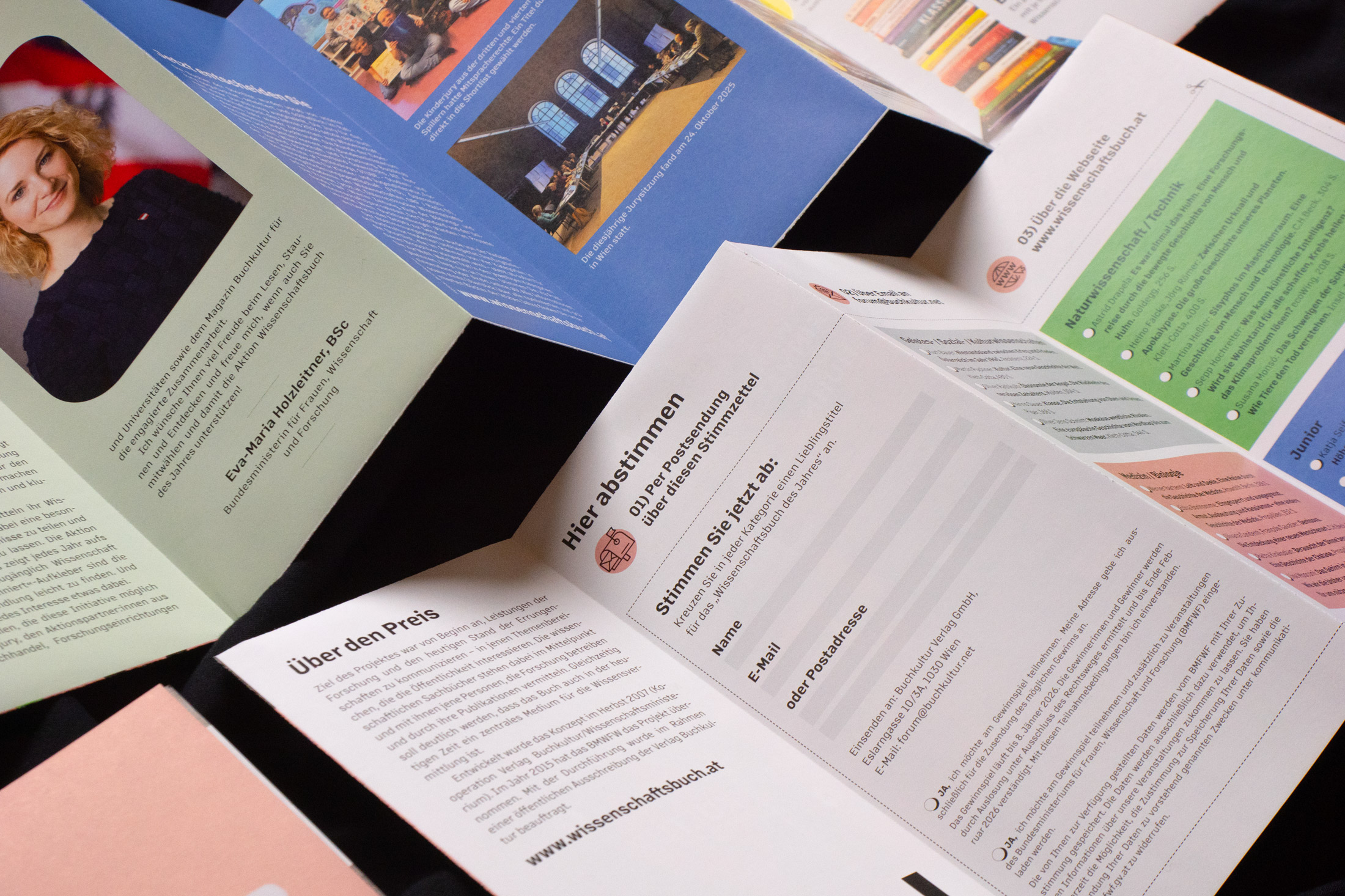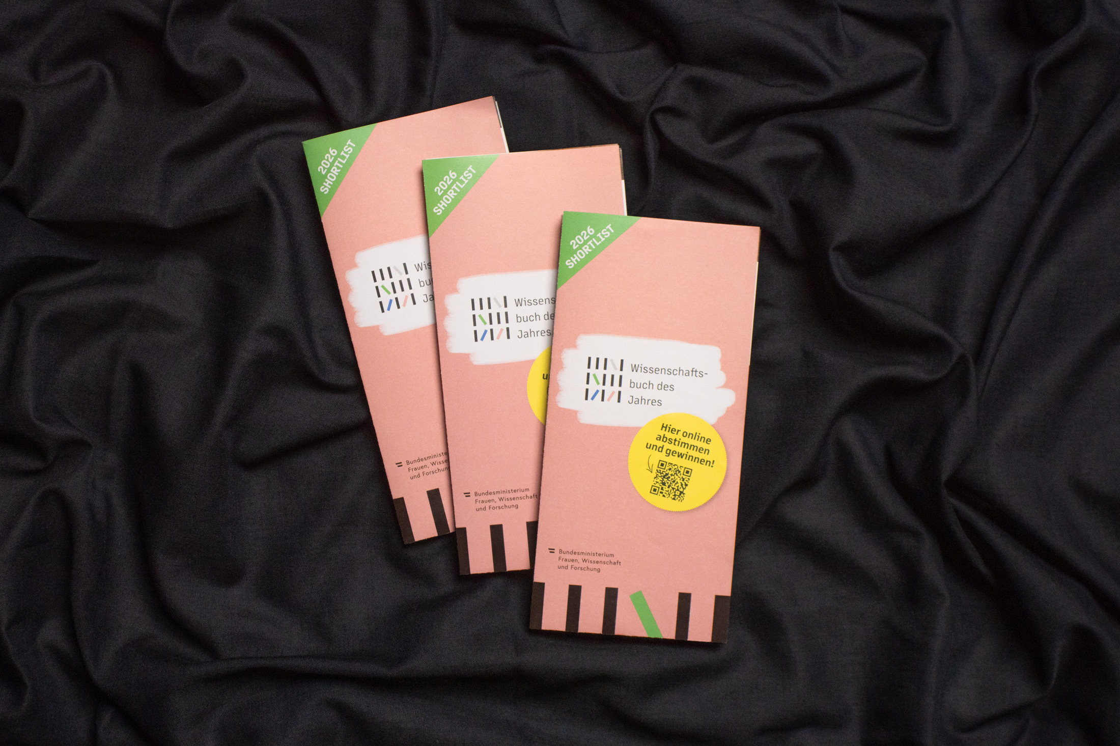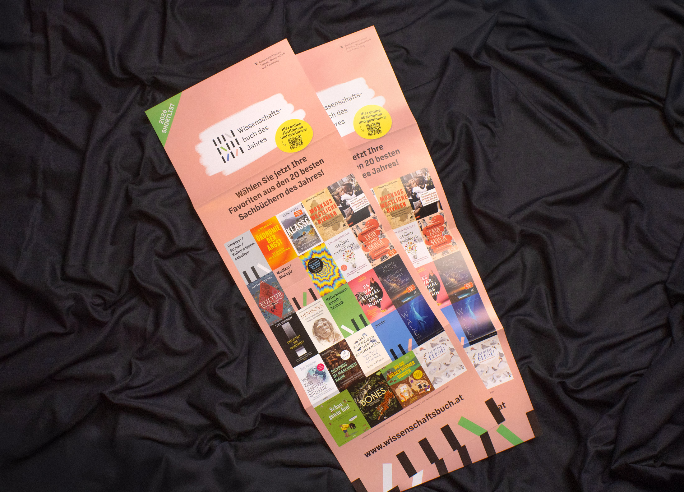 In 2026, we again had the pleasure of supporting the project visually by designing posters and flyers promoting the public voting phase. The design elements of the Science Book were playfully incorporated to ensure strong recognizability and to create a cohesive, consistent visual appearance.