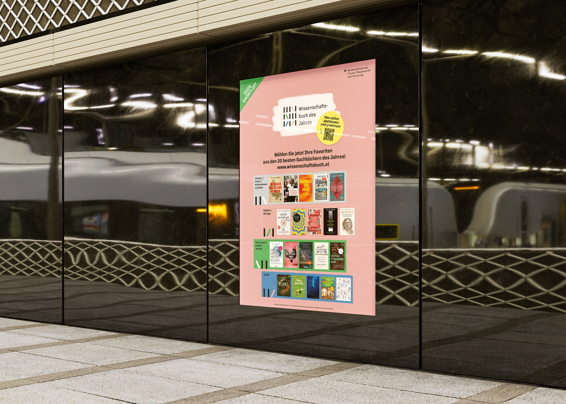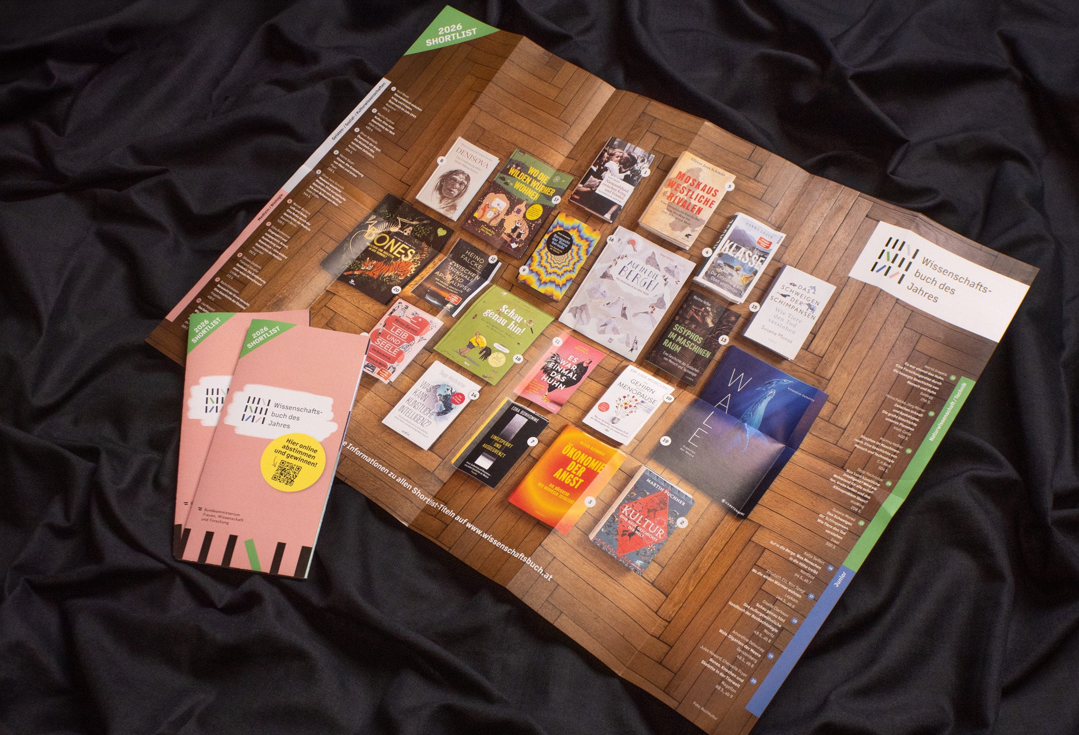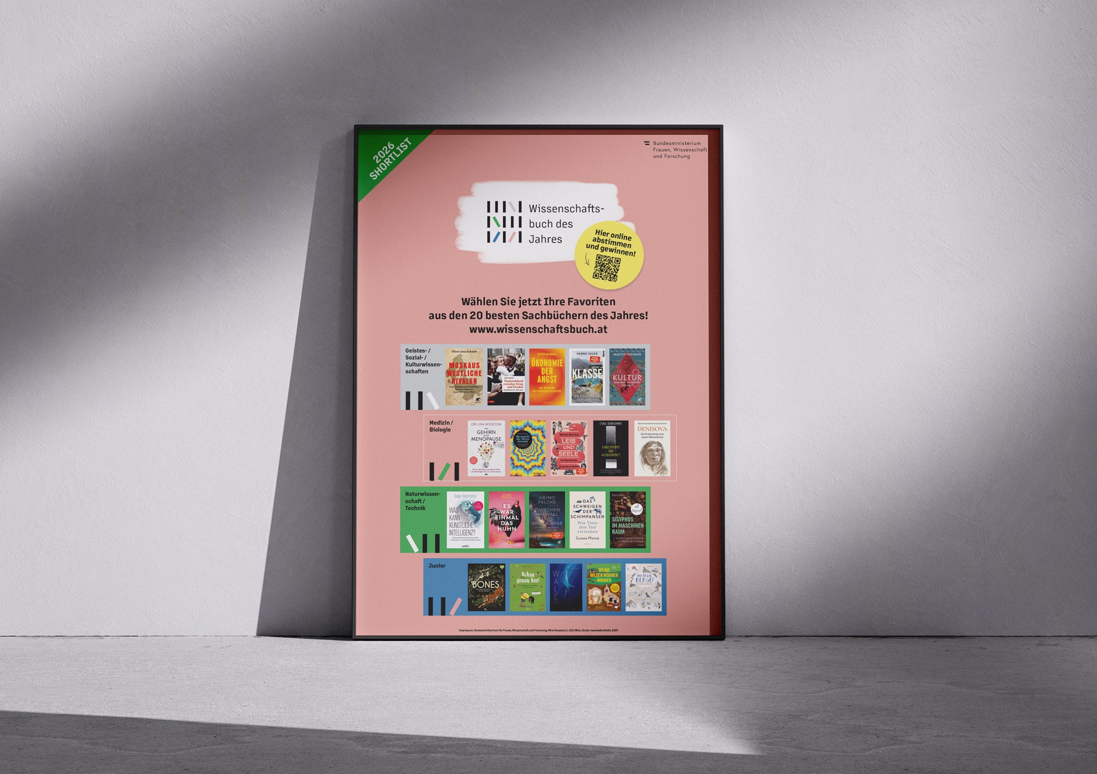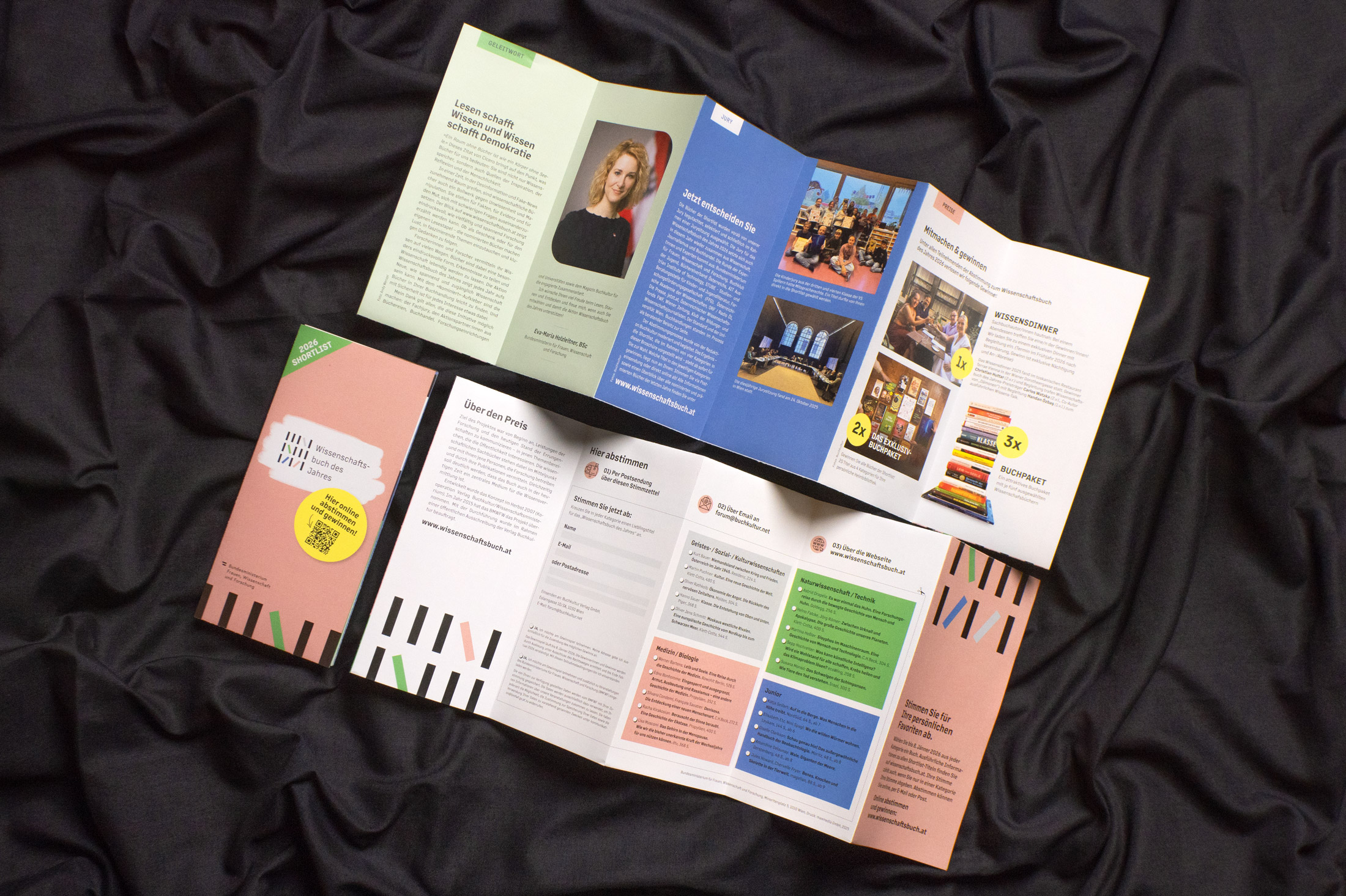 In 2026, we again had the pleasure of supporting the project visually by designing posters and flyers promoting the public voting phase. The design elements of the Science Book were playfully incorporated to ensure strong recognizability and to create a cohesive, consistent visual appearance.